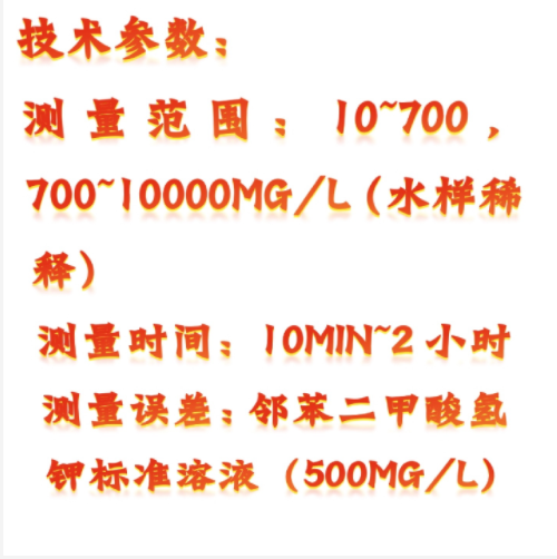 測量范圍:10~700,700~10000MG/L(水樣稀釋)