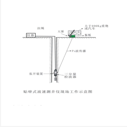 在地面敲擊震板,向地下作用一沖擊力后,沿井壁地層就有P波和S波向下傳播, P波和S波傳播到檢波器位置時,檢波器就可以把P波和S波的初至時間和振動波形轉換成電信號,由記錄儀器記錄下來。由相鄰兩點P·S波的初至時間差可計算出兩點間地層的波速值。