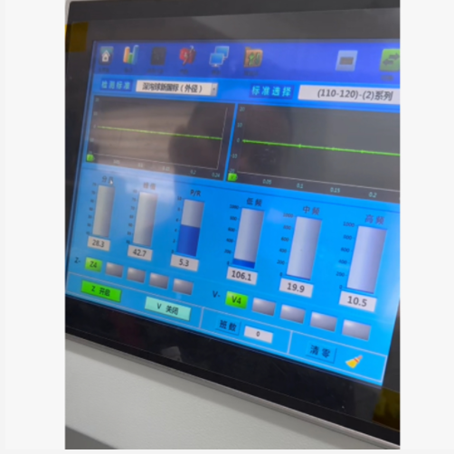 軸承振動測振儀是軸承振動測試的綜合型機器,可以單獨測量軸承的振動加速度值、振動速度型值,還可以同時測量軸承振動的加速度值和速度值。測振分析系統(tǒng)由一個基于驅動器和PC(個人計算機)的分析器組成,該分析器從一個內裝放DA器的加速度或速度拾振器讀取軸承噪聲信號。然后,這些信號用特定的算法進行數字化分析后,可以評估軸承的振動情況及各種缺陷。用戶既可看到分析的結果或統(tǒng)計數據,也可以聽到軸承振動的噪聲信號。測量數據包括值和峰值數據,F(xiàn)FT分析,質量分布圖等等,都由此設備自|動測量,并且也可得到各種參數的統(tǒng)計圖表,因而可以對制造過程的控制進行檢查。每次測量的結果自|動保存,并可以“EXCEL”的表格形式導出。