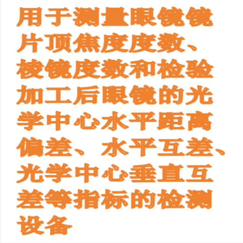焦度計是用于測量眼鏡片(含角膜接觸鏡)光學參數的計量儀器,用于測量眼鏡鏡片頂焦度度數、棱鏡度數和檢驗加工后眼鏡的光學中心水平距離偏差、水平互差、光學中心垂直互差等指標的檢測設備,主要應用于眼鏡驗配、及質檢等行業。