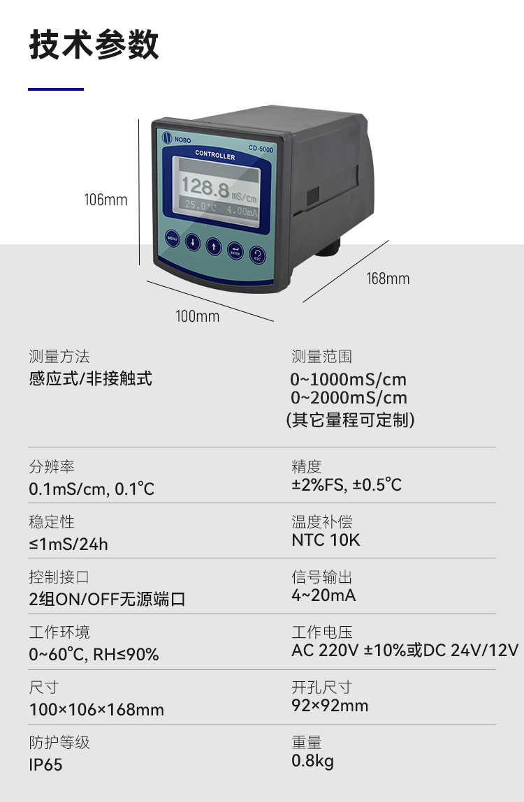 可進(jìn)行電導(dǎo)率測量、上下限控制、標(biāo)準(zhǔn)的電流變送