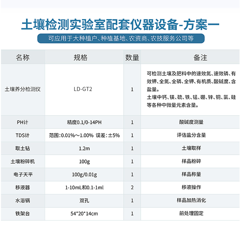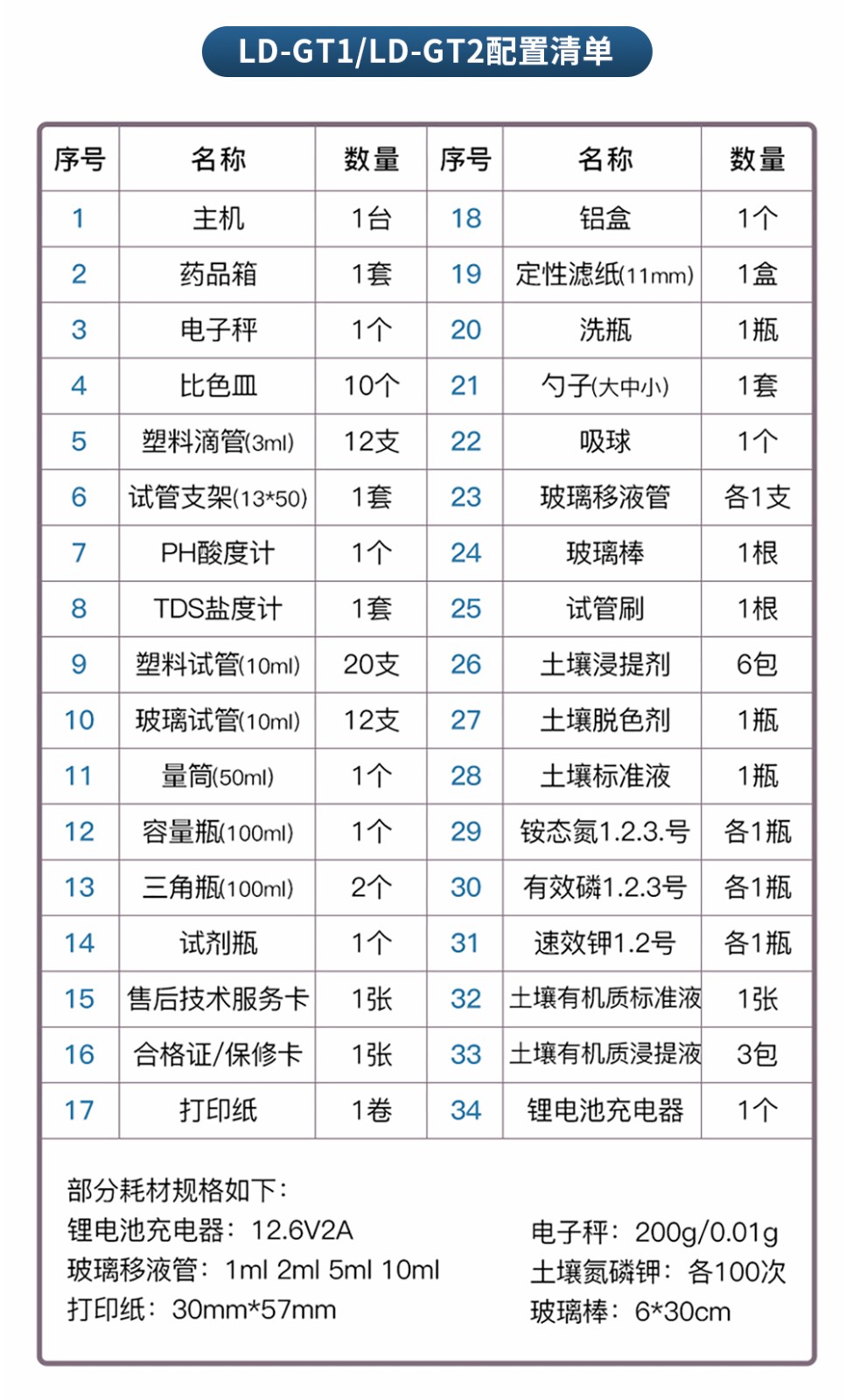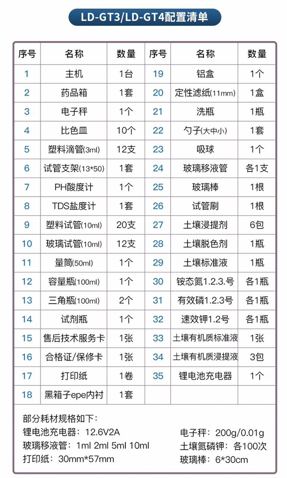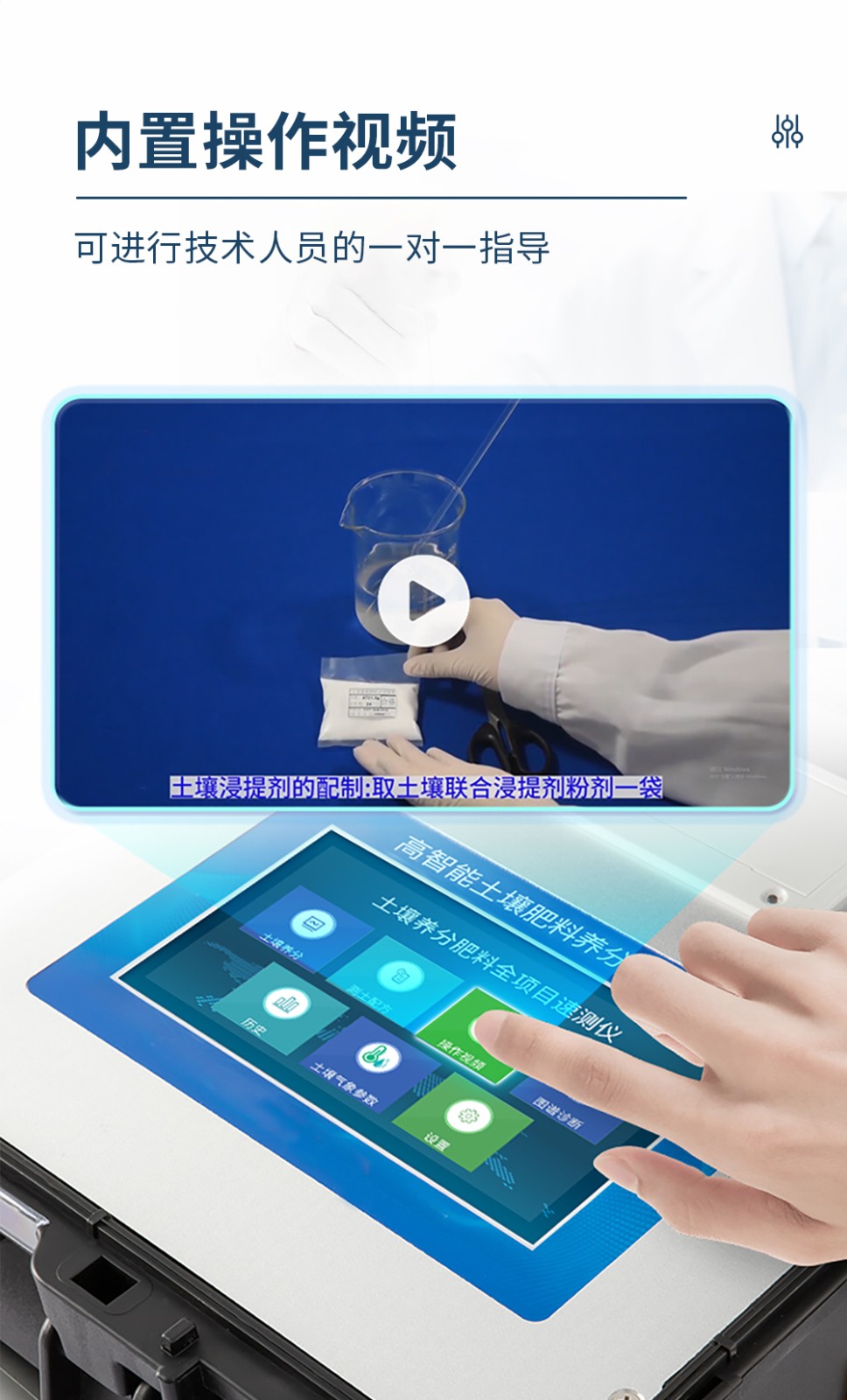 配套齊全:該儀器集藥、器、儀為一體,攜帶方便,相當于一個小型移動實驗室,無需用戶自配附件,亦可靈活野外流動測試。適于農業服務部門或農資經銷商、合作社、肥料廠商、大種植戶測土施肥和鑒別肥料真假。