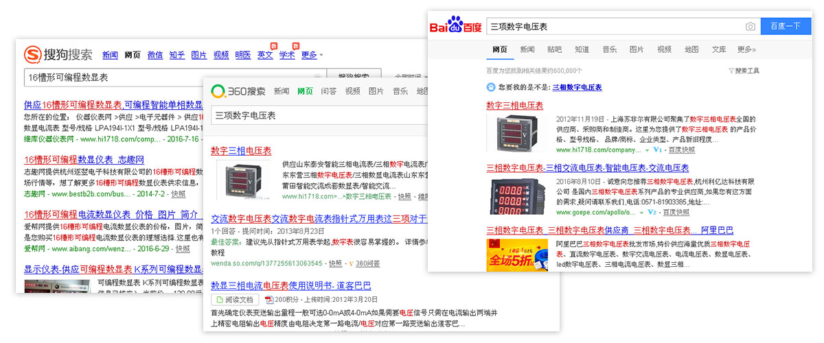百維通客戶優勢產品排名對應類目及搜索頁面